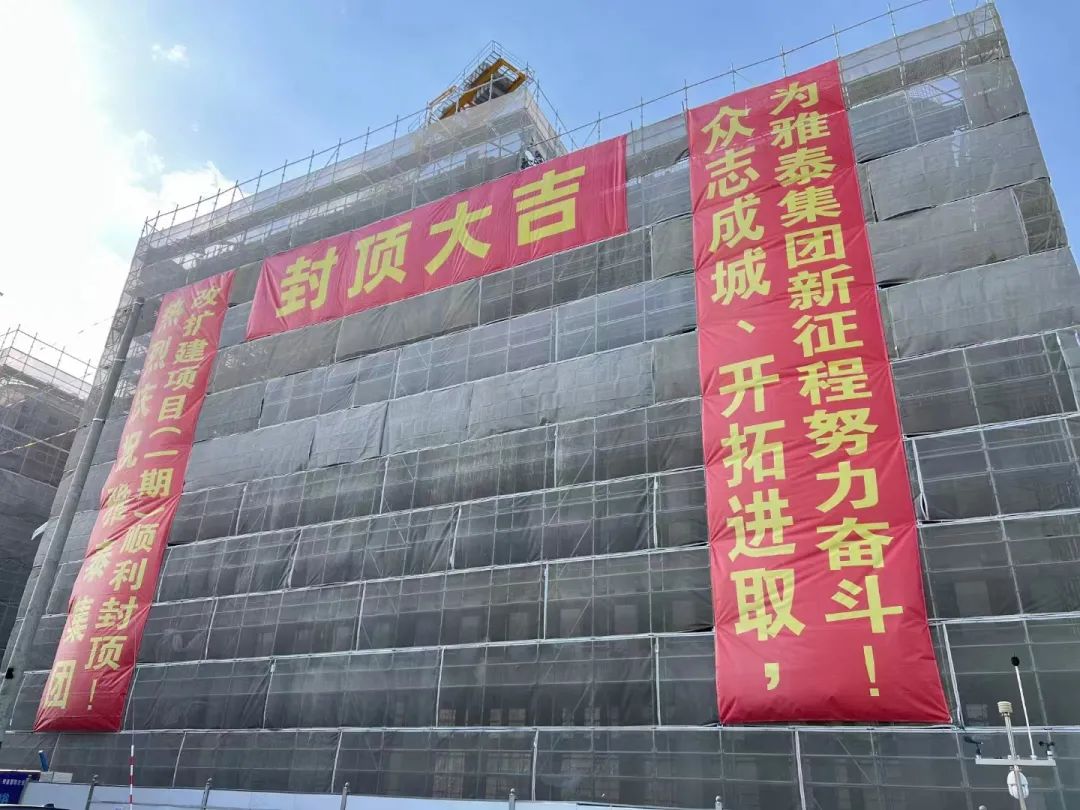 2022年12月18日,雅泰迎來23周歲生日之際,聯(lián)東U谷·雅泰國際企業(yè)港項(xiàng)目成功完成主體封頂,集團(tuán)大樓上掛滿了慶賀的條幅,項(xiàng)目相關(guān)領(lǐng)導(dǎo)、單位共襄盛舉。